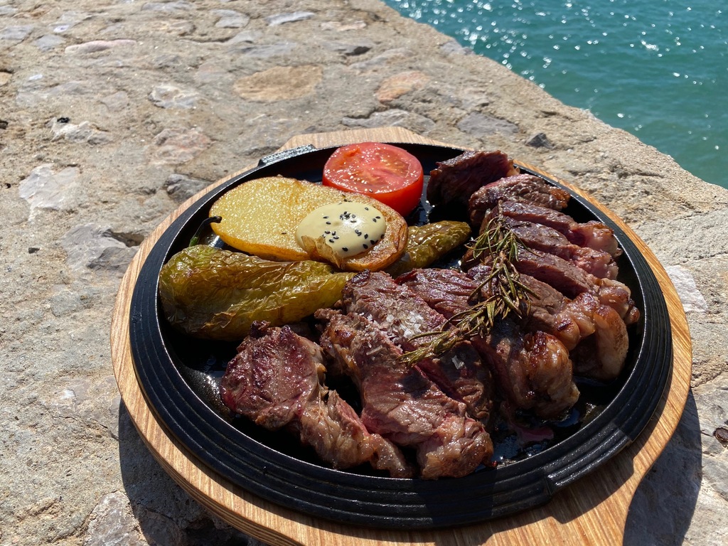 (acompañado con patata panadera y escalivada de verduras a la brasa)